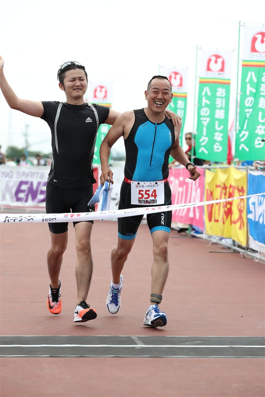 と、と、突然、後ろからタケちゃんマンが肩を組んで一緒にゴールしてくれました。(*☉д☉) ?