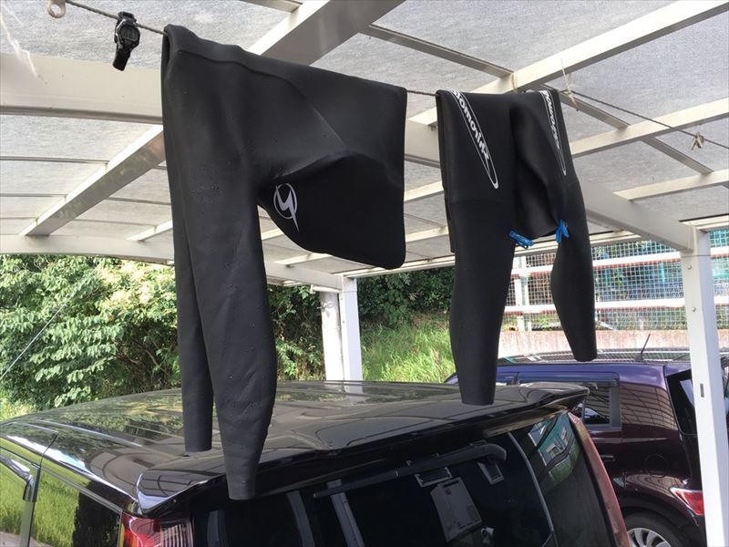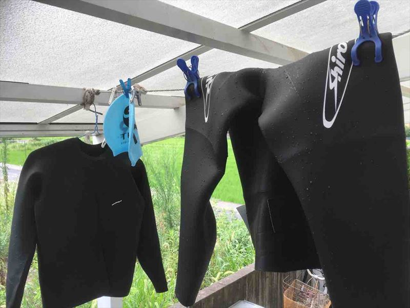 帰宅後、すぐに自転車の掃除とウエットスーツの水洗いで本日のスケジュール全終了。