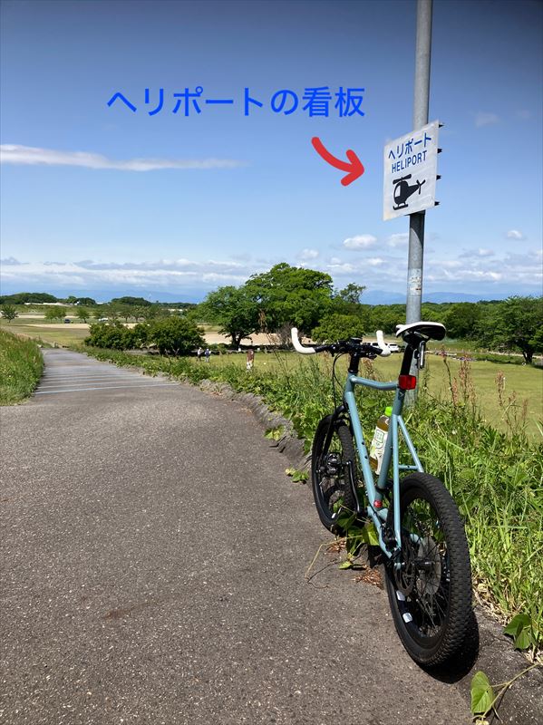 木曽川サイクリングロードでヘリポートの看板に驚き、